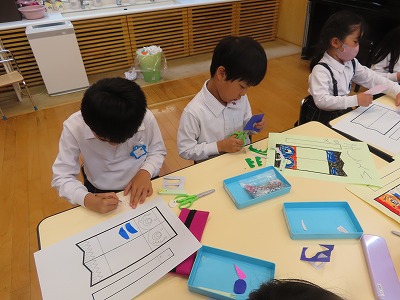 おりがみに鉛筆で形を描いて、はさみで切ったら