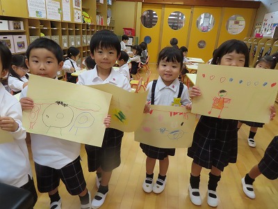 自分の顔やお父さんお母さんの顔も上手に描けるようになってきたね☆