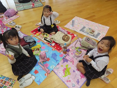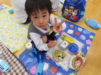 遠足ごっこの1番の楽しみは、みんなが朝から楽しみにしていたお家の方が作ったお弁当♡