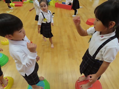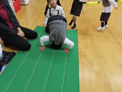 お弁当が終わった後は、マットででんぐり返しをしたり、飛び石でじゃんけんをして遊んだり、
