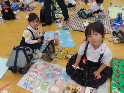 ホールでレジャーシートを敷いて食べたお弁当は特別で、とっても美味しかったね☆