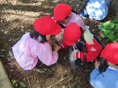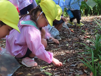 「葉っぱが落ちているかな?」や「どんぐり拾おう~」と準備満々です(^▽^)/
