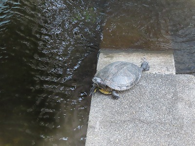みんなに顔を向けてくれたカメ、元気よく泳いでいた鯉に興味津々の子どもたち☆彡