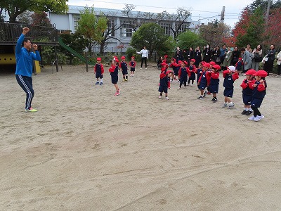 保護者の方に見守られて行った体操参観では、緊張する姿が見られた子ども、