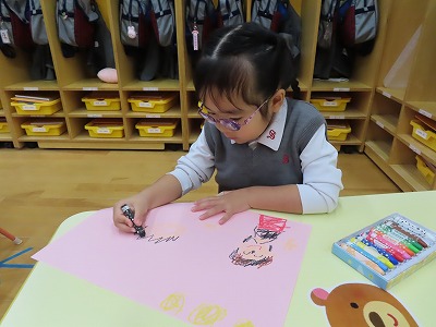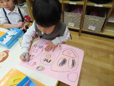 お話をしながら絵に表現していく子どもたちです♡