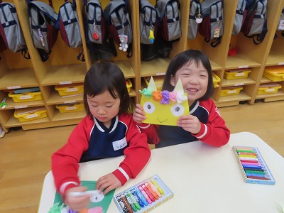 節分に向けて、お面作りも行いました‼