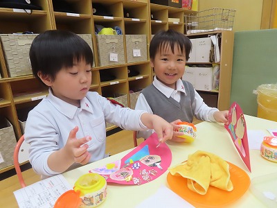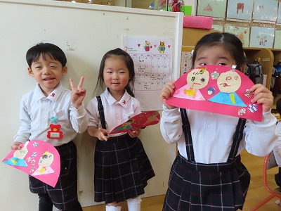 ひな祭りの歌を歌ったり、製作をしたりしてひな祭りを