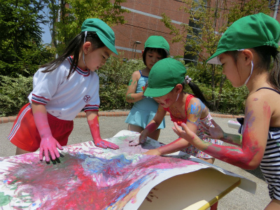 友だちと絵の具をつけあったりしながらたくさん遊びました☆