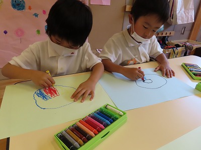 運動会で頑張ったことや嬉しかったことを絵に描いて表現しました☆彡