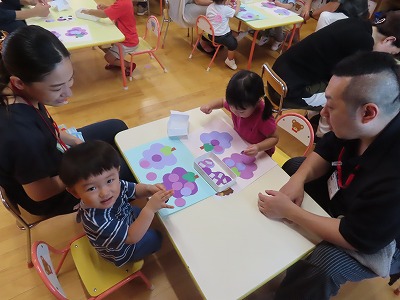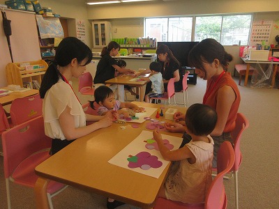 さくらんぼクラブ🍒 ☆季節の製作「ぶどう」☆ 【火曜日コース】 9/9 季節の製作「ぶどう」を作りました❤ ぶどう型の画用紙に丸い画用紙を 貼り周りに模様を描いて出来上がりです たくさんの実が実り美味しそうですね(^^♪ 【土曜日コース】 9/6 美味しそうなぶどうが沢山 出来ました!