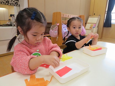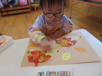 ひよこクラブ🐤 ☆季節の製作「ハリネズミ」☆ 花紙を裂いて ハリネズミの体に貼り付けて 出来上がりです♪ カラフルなハリネズミに なりました❤ 11/25 【火曜日コース】 11/26 【月・水・金コース】 上手に裂いて沢山 針が付きました♪ かわいい目に口も描けました❤