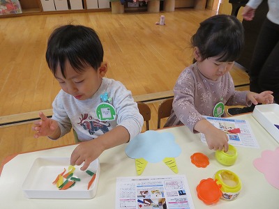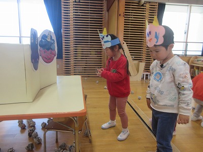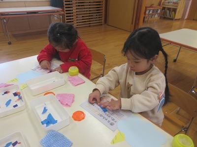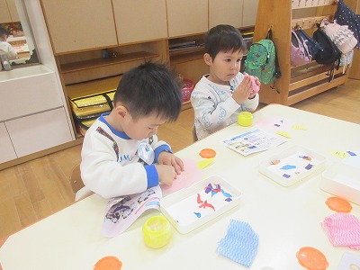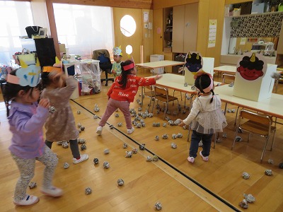 ひよこクラブ🐤 1/30 【月・水・金コース】 ☆節分☆ 鬼のお面作りをしました。 紙テープを契り糊で貼り 出来上がりです❤ 新聞紙の豆を 「鬼は外」と大きな声で言い 投げて鬼を退治しました♪ 2/3 【火曜日コース】 カラフルな鬼のお面が 出来上がりましたね❤ 豆を沢山投げて 鬼を退治出来ましたね!