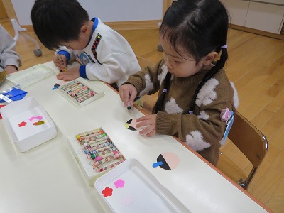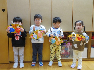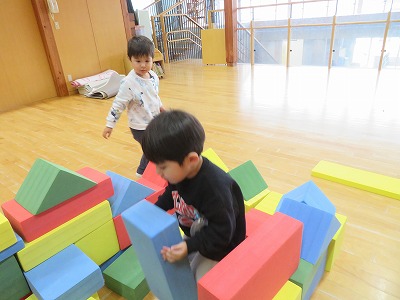 ひよこクラブ🐤 3/3 【火コース】 ☆製作「お雛様」☆ 今日はひな祭りなので 製作でお雛様を作りました❤ 折り紙を三角に折って 体を作り、顔をクレヨンで描いて 台紙に貼り、お花も貼って 出来上がりです。 素敵なお雛様が出来ましたね! その後に雨だったので ホールで大型積み木で 遊びました!