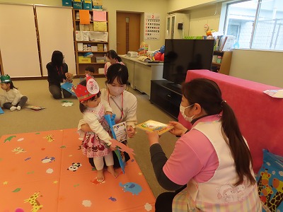 さくらんぼクラブ🍒 ☆修了式☆ 【火曜日コース】 3/10 さくらんぼクラブが 今日で終了になりました。 素敵な冠を作って おみやげを貰いました。 さくらんぼクラブに頑張って通って 楽しく過ごすことが出来ましたね❤ ありがとうございました。