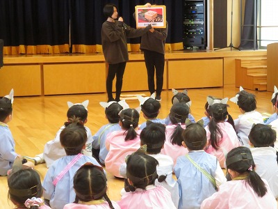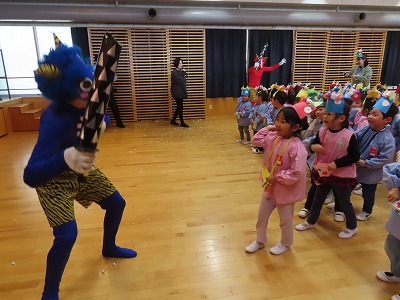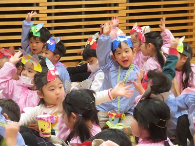 クイズをしたり、鬼のパンツの手遊びをしたりして
