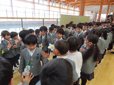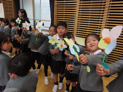 年少組はお花を、年中組はメダルのプレゼントをしました(^^♪